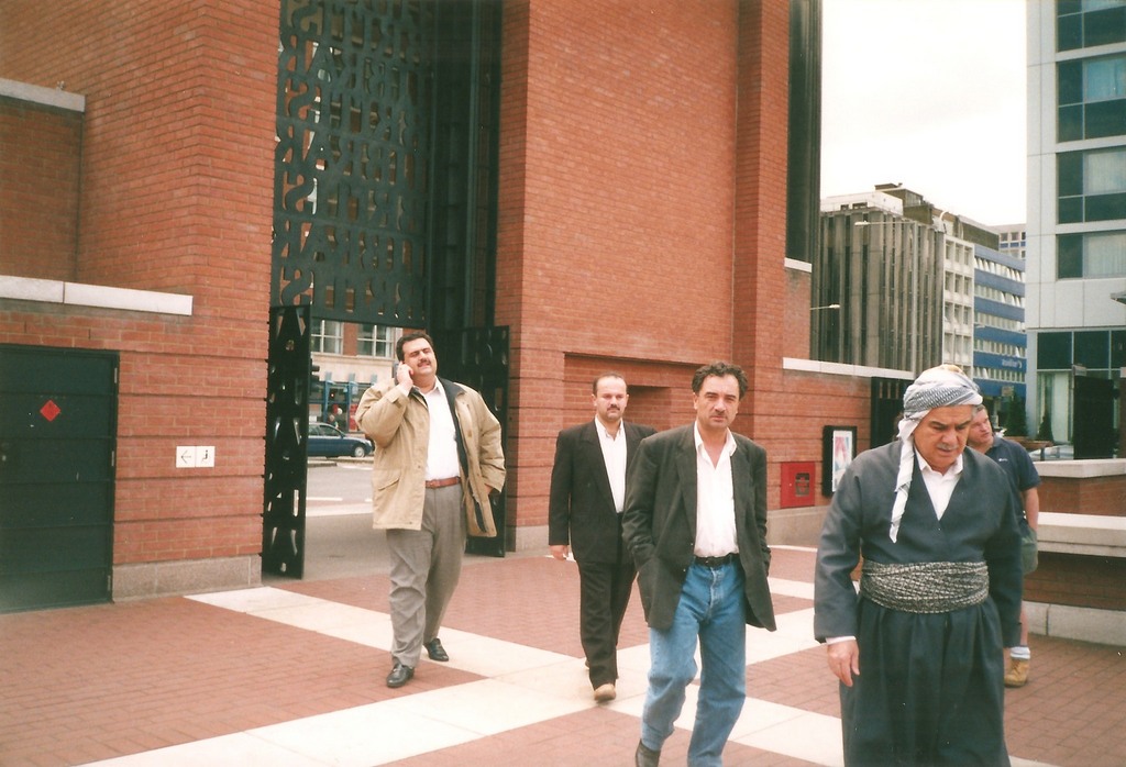 الشيخ مُحَمَّد المُحَمَّد الكَسْنَزان بعد الانتهاء من إحدى زياراته اليومية إلى المكتبة البريطانية في لندن، ويظهر فيها نجله الأكبر وشيخ الطريقة الحالي الشيخ نهرو، وأخيه الشيخ عقيل، ومرافقه الحاج لطيف (منتصف 2000)