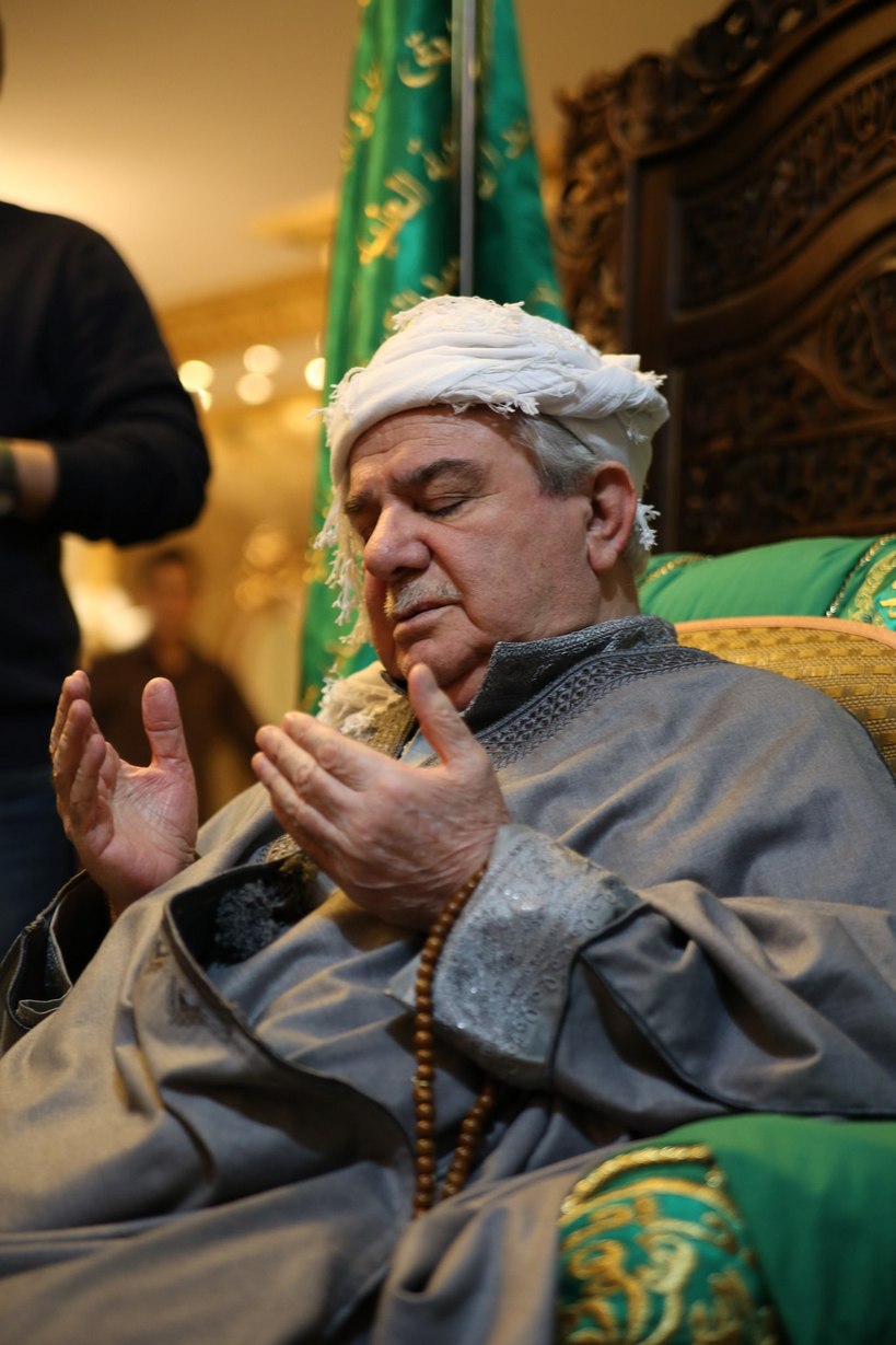الشيخ مُحَمَّد المُحَمَّد الكَسْنَزان في مسكنه خلال زيارته لندن (منتصف 2000)