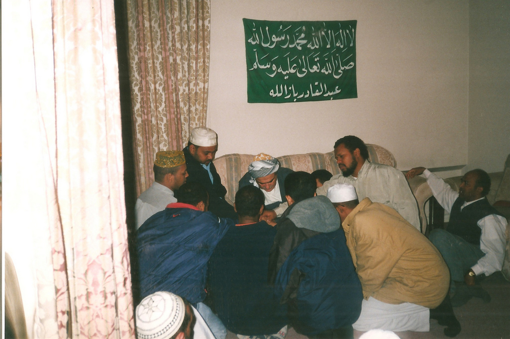 الشيخ مُحَمَّد المُحَمَّد الكَسْنَزان يعطي البيعة في محل إقامته خلال زيارته لندن (2000)