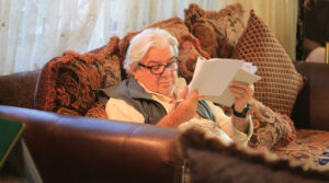 الشيخ مُحَمَّد المُحَمَّد الكَسْنَزان في غرفته الخاصة في تكية عَمّان، الأردن، يمارس هوايته المفضلة، القراءة (19 نيسان 2012)