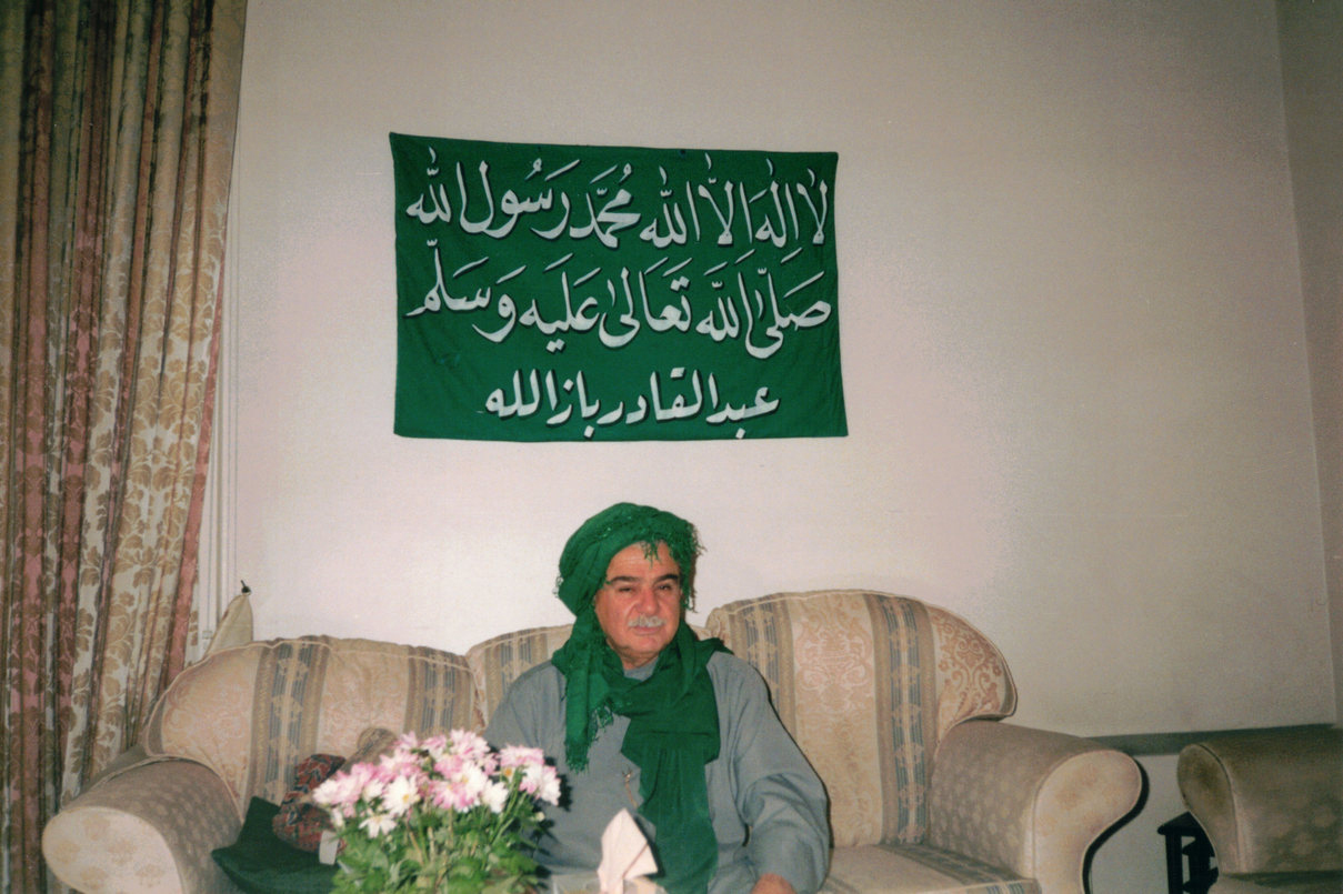 الشيخ مُحَمَّد المُحَمَّد الكَسْنَزان في مسكنه خلال زيارته لندن (منتصف 2000)