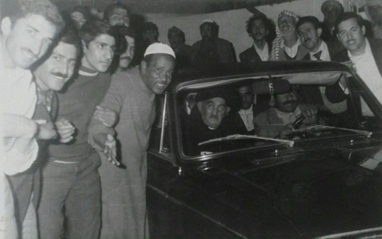 الشيخ مُحَمَّد المُحَمَّد الكَسْنَزان في فاتحة والده وأستاذ الطريقة قبله الشيخ عبد الكريم الكَسْنَزان، كركوك، ويبدو الحزن وثقل مسؤولية الطريقة واضحان عليه (شباط 1978)